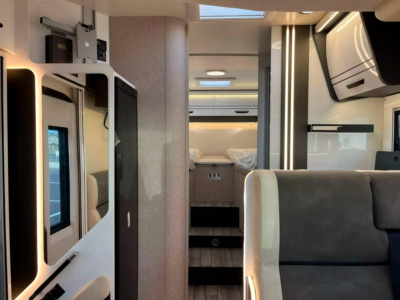 REGULADOR MPPT, SKYROOF, OSCURECEDORES DE CABINA PLISADOS, BRAZO SOPORTE TV Y FUNDAS ASIENTOS